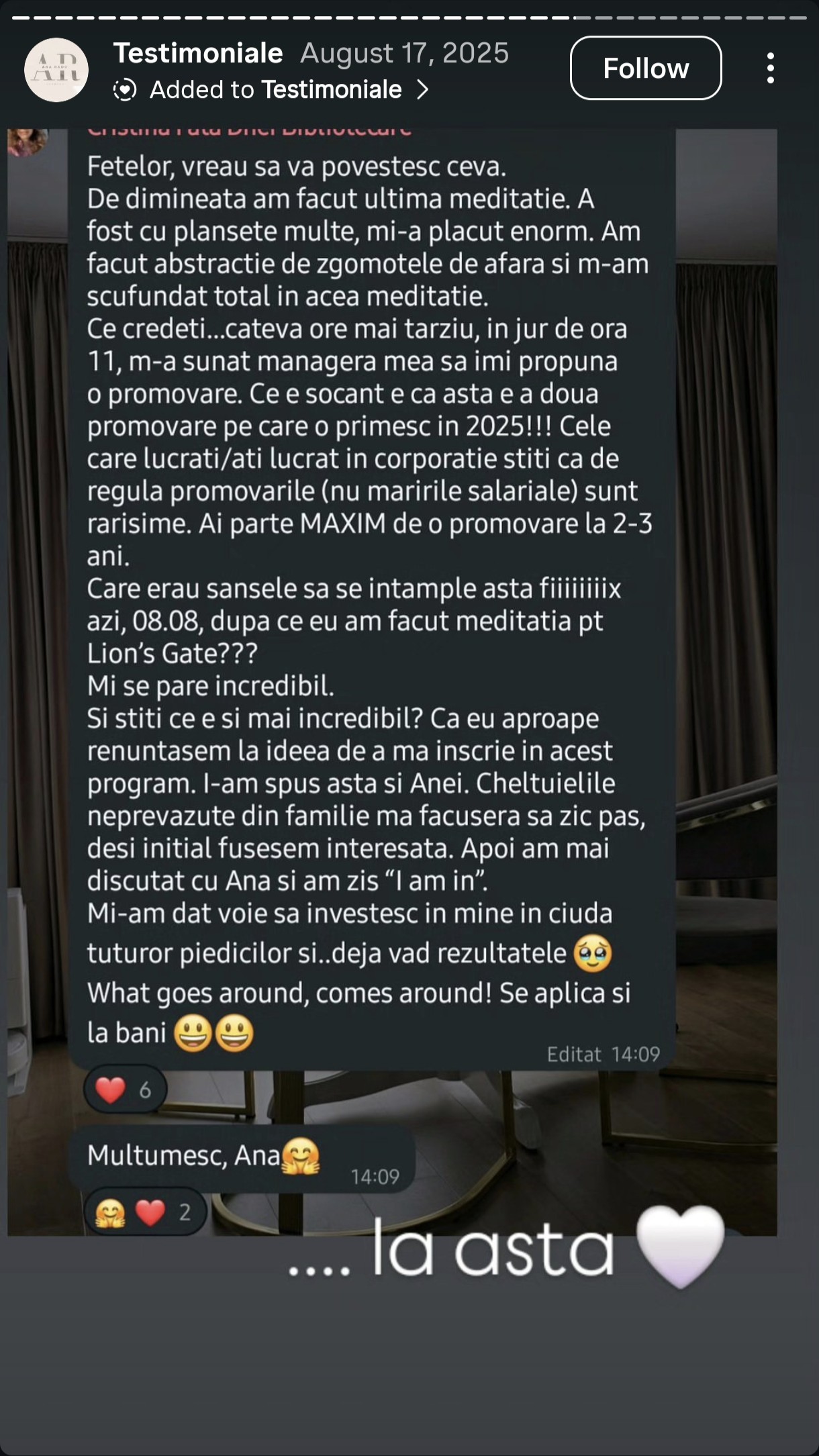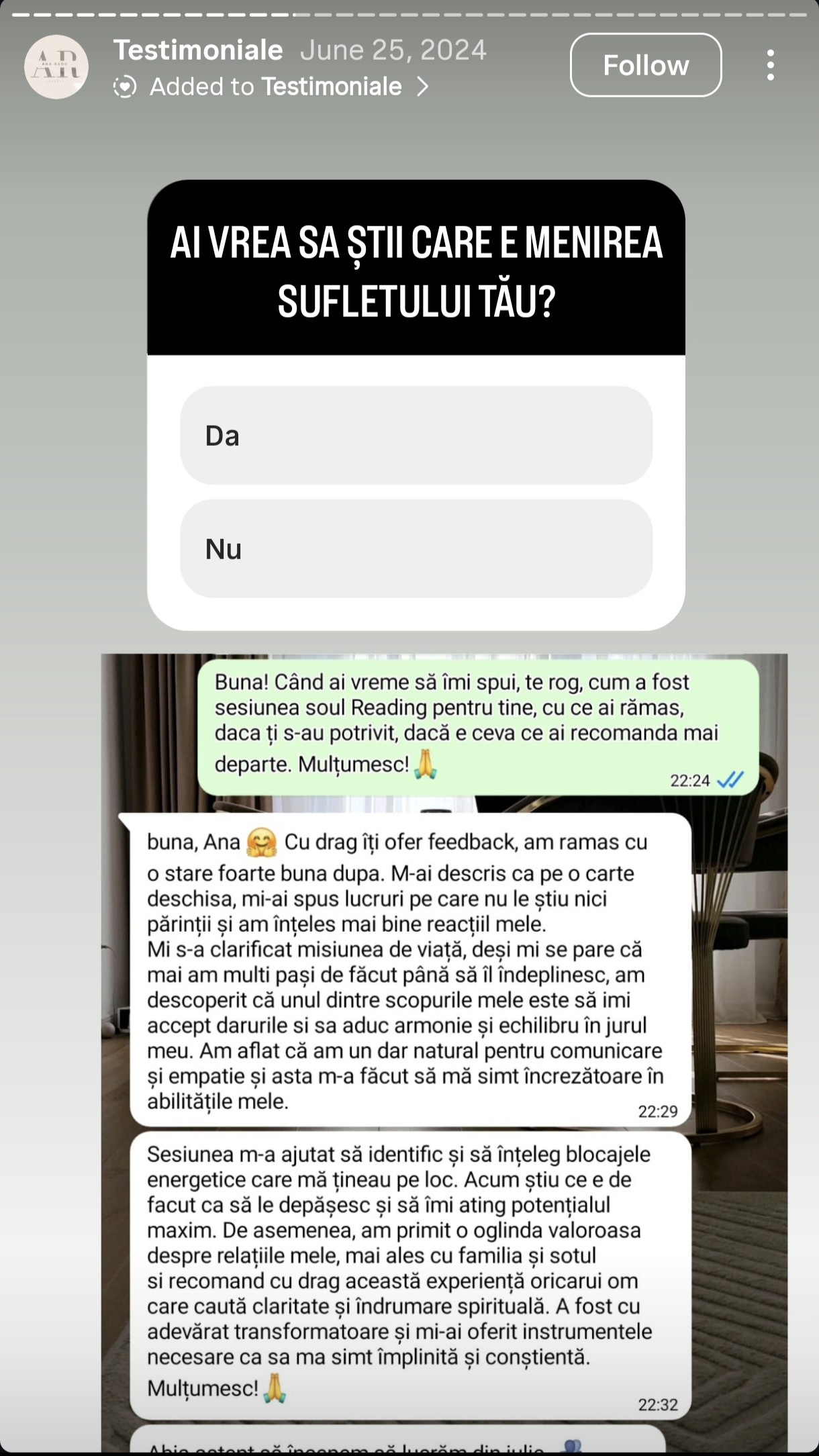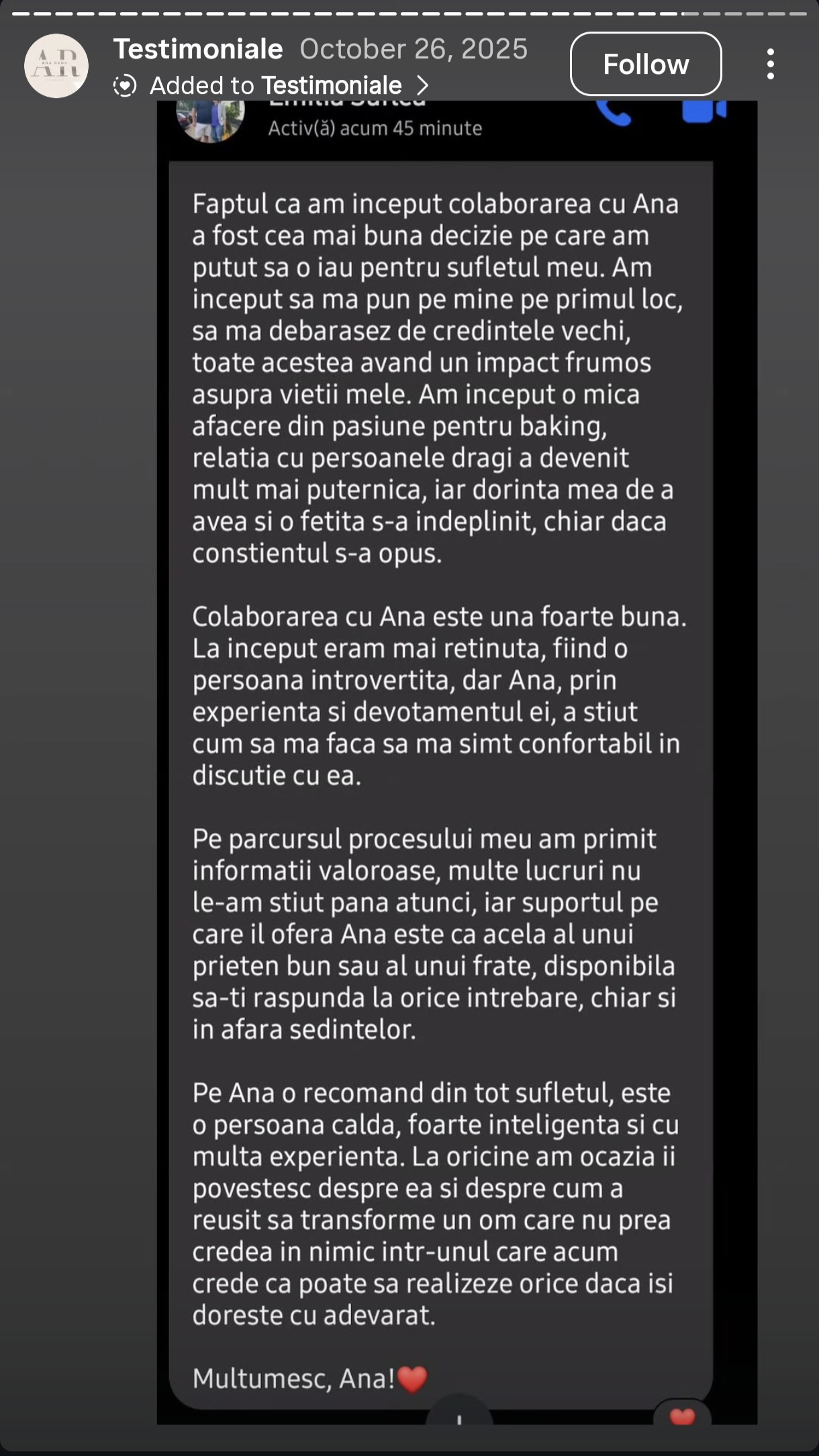 Îți mulțumesc că ești aici și sper ca aceste experiențe să-ți ofere încredere și claritate pentru următorul pas…