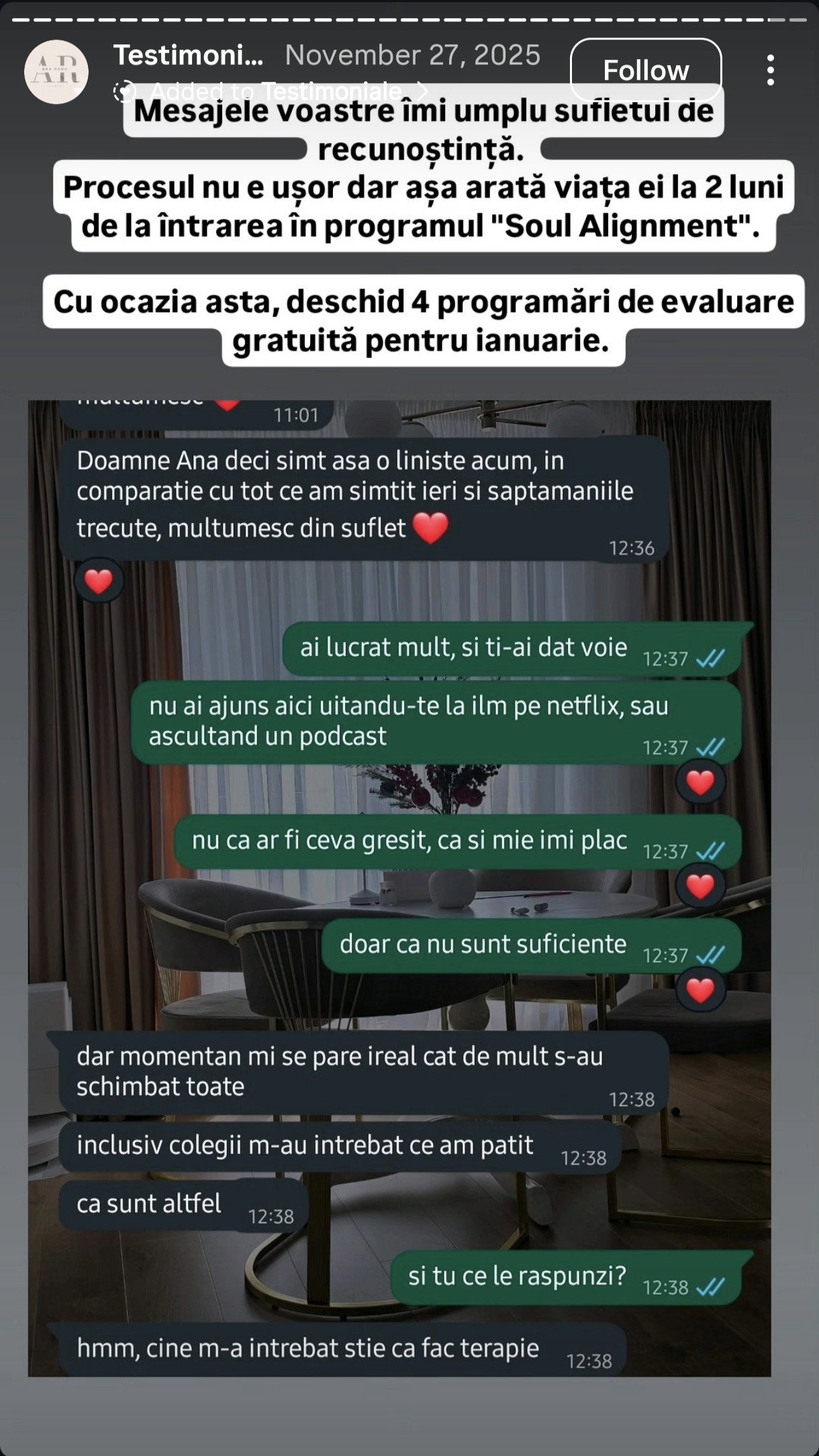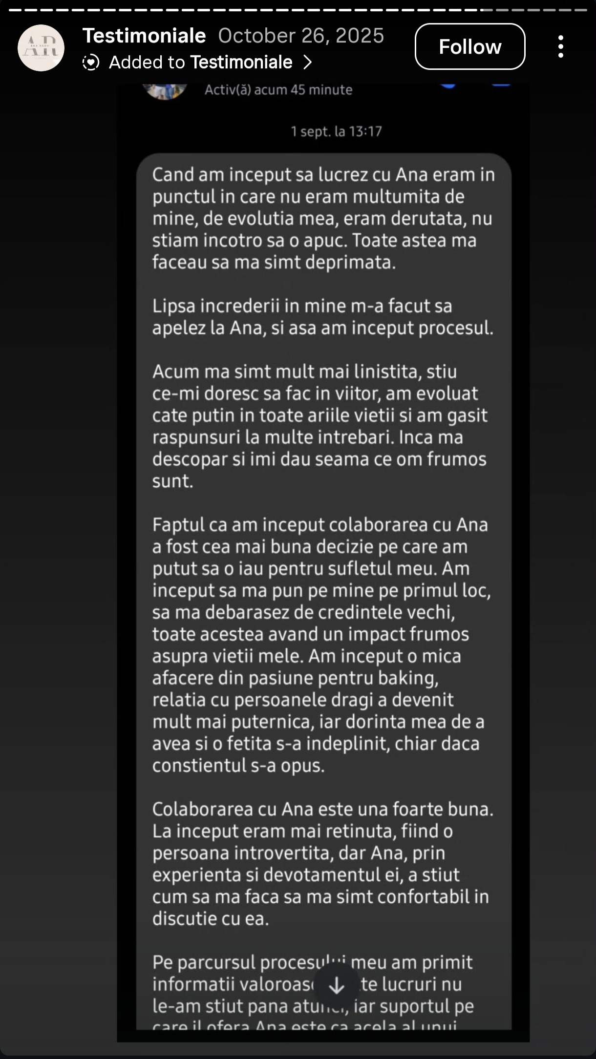 Testimonialele de mai jos sunt mesaje autentice de la oameni care au avut curajul să înceapă procesul și să se aleagă pe ei.